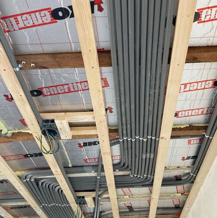 Installatie van LED-verlichting, kabelgoten, bekabeling in muren of plafonds.